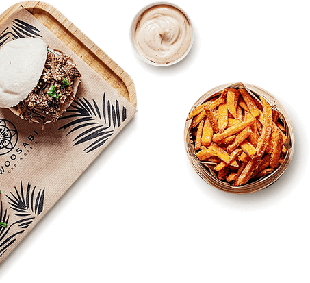 ASIAN BURGERS IN FLUFFY STEAMED BUNS, AVAILABLE IN BOTH MEAT AND VEGGIE VERSIONS. CHOOSE THEM SOLO OR AS PART OF A SET WITH CLASSIC FRIES, SWEET POTATO FRIES, OR MISO SOUP AND MUCH MORE. THERE’S ONE FOR EVERYONE!
